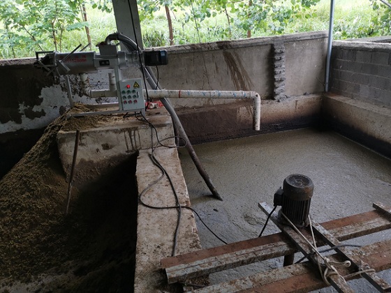 牛糞專用無堵塞切割泵將牛糞跟污水一起抽進(jìn)處理機(jī)內(nèi),再由不銹鋼擠壓絞龍將牛糞污水逐漸推向機(jī)體前方,同時(shí)不斷提高前緣的壓力, 迫使物料中的水分在邊壓帶濾的作用下擠出網(wǎng)篩,流出排水管。牛糞處理機(jī)工作是連續(xù)的, 其物料不斷泵入機(jī)體,前緣的壓力不斷增大,當(dāng)大到一定程度時(shí), 就將卸料口頂開, 擠出出料口,達(dá)到擠壓出料的目的。為了掌握出料的速度與含水量, 可以調(diào)節(jié)主機(jī)兩邊配重塊的位置,以達(dá)到滿意適當(dāng)?shù)某隽蠎B(tài)。